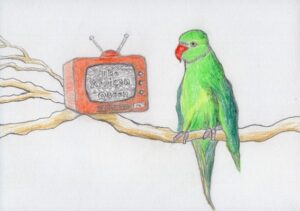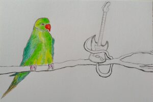 As I walk around the green spaces of southwest London, my attention is often seized by a high-pitched shrieking in and around the trees. When I look up, I’m likely to see a flash of bright green: part of the plumage of an exotic bird. Sometimes there are flocks of them, zipping around, appearing to have a lot of fun and making a distinctive racket. These are ring-necked parakeets, which were once seen mainly in Africa and Asia, but have since multiplied and thrived in London and elsewhere in the UK and Europe. I find them strange and beautiful, and I enjoy drawing them. These birds have inspired poets, painters and photographers, and there are even female football clubs named after them, including Twickenham Parakeets FC, for aspiring young girl players.